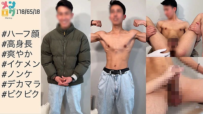 高身長でスタイルも綺麗な爽やかイケメンが初登場です!めっちゃ女とやりたがってますが今回は手コキ撮影。見られることには全然緊張してないようですが、なんせノンケなので勃たせるのに一苦労(笑)感度は良くないみたいだけど勃ったらデカマラでマジでエロいです。。ハーフ顔に見合ったデカマラです(笑)でも意外と早漏...?最後はビクビクしながらイっちゃいます!