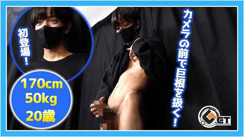 初出演!クリっとした目のスリム男子が私服姿で登場!スラっとした綺麗な体型の彼は巨根持ち!カメラの前で激しくしごいてもらいました。