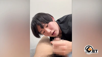 まずはパンツ越しにスタッフのチ〇コを舐めまくり、舌をペロペロとノンケっぽい使い方で頑張ってくれます。パンツを脱がせると生チ◯をパクリ!ちょっと嫌そうな表情もノンケながらということで、一生懸命舐めまくり!