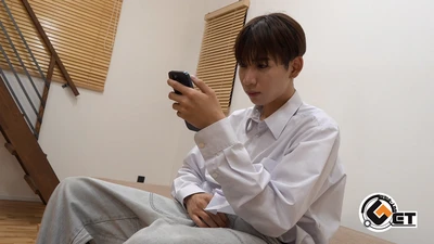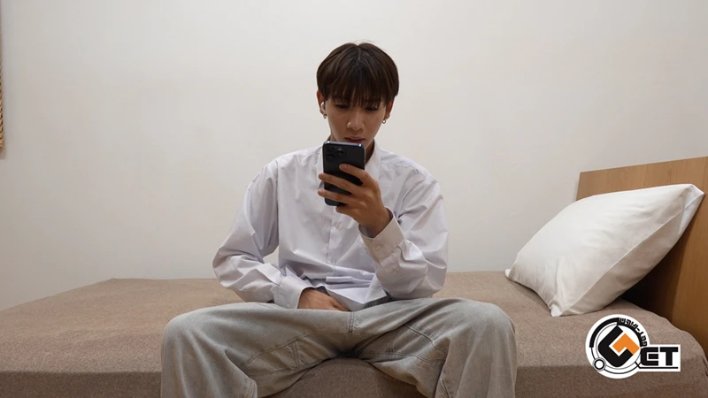 初登場!綺麗めなシャツにカジュアルなジーンズパンツとおしゃれな姿で来てくれた、巨根持ち今風男子がカメラの前で全裸姿で扱いてくれました!